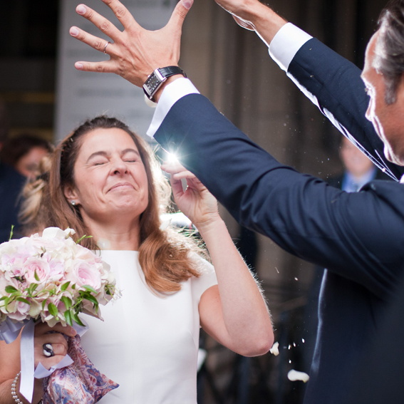 Mariage pluvieux… mariage heureux ! Une mariée avec un air de Jackie Kennedy, des invités venus du monde entier … une journée haute en couleurs malgré un soleil boudeur !