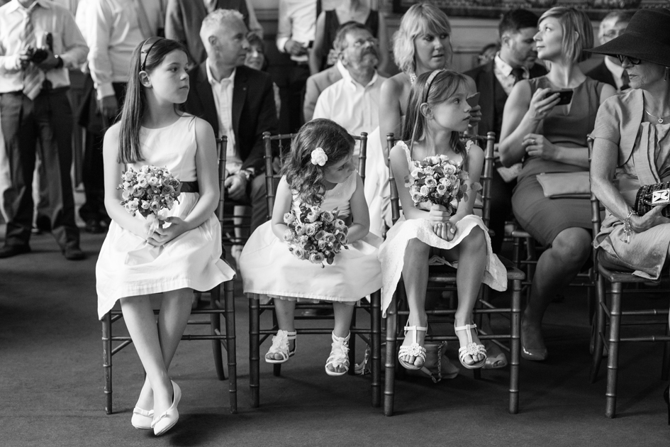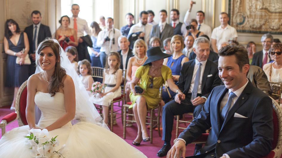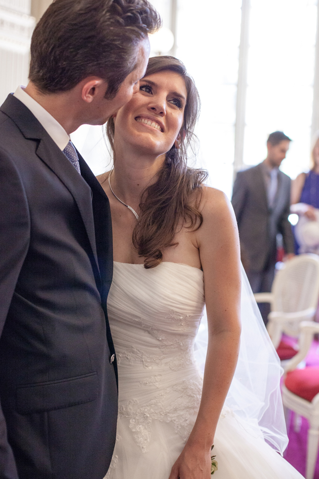 Un très beau mariage au coeur de l’hiver, au coeur de Paris et au coeur de la fête foraine. Paola et Séverin ont échangé leur consentement à Paris, le 23 février 2013, en l’église St Pierre du Gros Caillou. La neige s’est invitée à la sortie de l’église, avec sa touche de poésie et son univers cotonneux, si doux pour les photos. La magie était aussi présente lors de la réception, grâce à un lieu unique dans Paris : Le Musée des Arts Forains. Plongée immédiate dans l’univers du Paris d’Arletty et de Jacques Prévert, avec ses manèges, ses courses de garçons de café, ses chevaux de bois, ses balancelles : une immersion dans le monde de l’enfance qui, très vite, crée une ambiance festive et conviviale entre tous les invités. Paola a été aidée par une famille top créative : couronnes de fleurs des enfants réalisées par la cousine de Paola (Clara Courtaigne), livret de messe dessiné par sa belle-soeur Eugénie (site : http://www.lapetitefamille.ultra-book.com/portfolio ) et enfin des plans de table « villes du monde » croqués par sa mère. Un mariage qui fait aimer Paris, les reportages sous la neige, les lieux rares chargés d’histoire ! Merci à Paola et Séverin pour leur confiance.